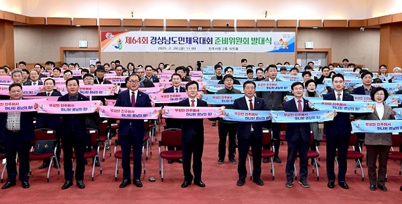 경남 진주시는 28일 시청 2층 시민홀에서 '제64회 경상남도민체육대회 준비위원회 발대식'을 열고, 오는 5월 2일부터 5일까지 4일간 열리는 도민체전의 성공적 개최를 다짐했다.