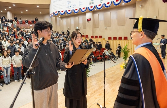신입생 선서는 간호학과 이윤아, 전자공학부 김수원 학생이 대표로 했다. 학생들은 “교훈인 개척의 정신을 이어받아, 재학 중 학칙을 준수하고, 학생으로서 본분을 충실히 지켜, 성실하게 공부하며, 학교의 명예를 빛내는 일에 앞장서고, 나아가 국가와 사회에 봉사하는 역군이 될 것을 굳게 다짐”했다.