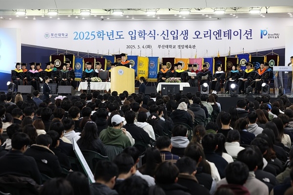 부산대학교는 '2025학년도 신입생 입학식'을 4일 오후 교내 경암체육관에서 개최해 신입생들을 환영하고, 대학 생활 적응을 돕기 위한 오리엔테이션을 개최했다고 5일 밝혔다.