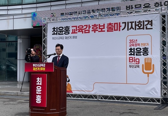 오는 4월 3일 치러지는 부산시교육감 재선거에 최윤홍 전 부교육감이 출마를 공식 선언했다.