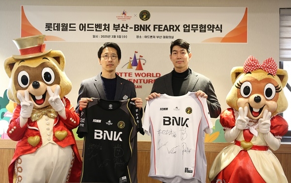 롯데월드 어드벤처 부산이 지난 5일 부산 e스포츠 구단 ‘BNK 피어엑스’가 소속된 e스포츠 기업 ‘SBXG(에스비엑스지)’와 업무 협약을 체결했다고 밝혔다.