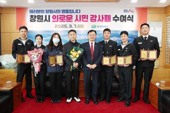 경남 창원시는 7일 위급한 상황에서 용기있게 시민의 생명을 구하고 큰 피해를 막은 의인 6명에게 창원시민의 마음을 담아 감사패를 전달했다.
