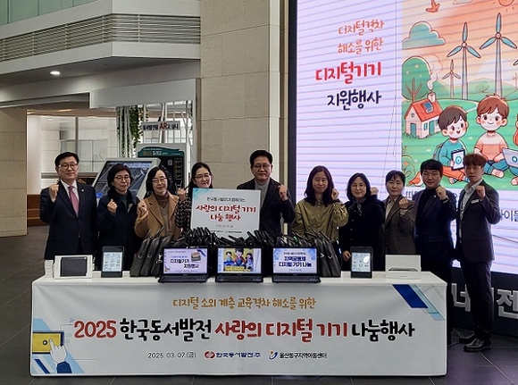 한국동서발전은 7일 오후 본사에서 지역아동 정보접근성 향상을 위한 ‘사랑의 디지털기기 전달식’을 개최했다.