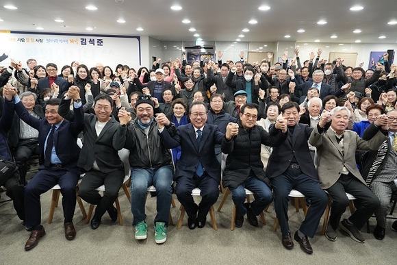 김석준 부산시교육감 재선거 예비후보가 지난 8일 부산진구 서전로에 위치한 선거사무소에서 캠프 개소식을 열고 본격적인 선거운동에 돌입했다. 이날 행사에는 부산시민과 각계 대표, 학부모, 지지자 등 1천여 명이 참석해 성황을 이뤘다.