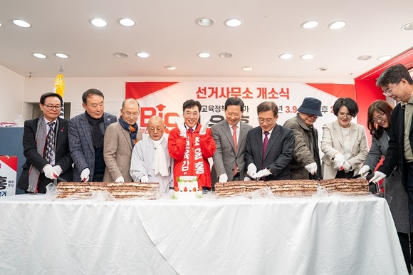 부산시교육감 재선거에 출마한 최윤홍 예비후보가 지난 9일 부산진구 가야대로에 위치한 선거사무소 개소식을 열고 본격적인 선거전에 돌입했다. 이날 개소식에는 학부모와 교육 관계자를 비롯해 1000여 명이 참석해 성황을 이뤘다.