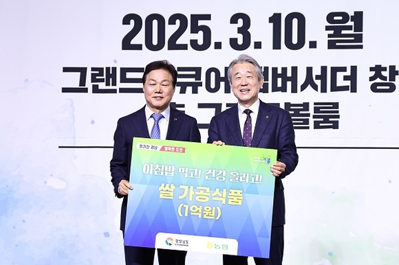 한편 행사에서는 쌀 가공식품 전달식이 열려 경남 지역에 기부된 물품이 도내 소외계층 아동 가정에 전달될 예정이다. 이어진 간담회에서는 농협 조합장들과 함께 농가 소득 증대 및 농업 발전 방향에 대한 논의가 이뤄졌다.