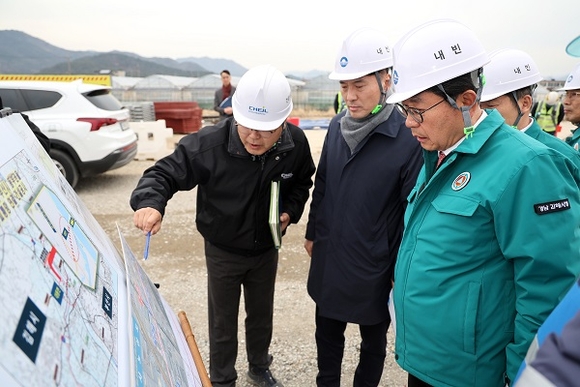 홍태용 김해시장이 지난 10일 오후 4시 김해와 부산을 잇는 초정~화명 광역도로 건설공사 2단계 구간(초정~안막) 현장을 방문했다.