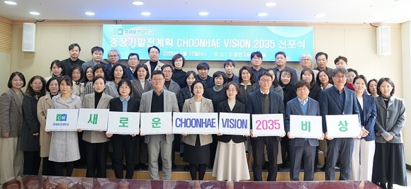 춘해보건대학교는 12일 대학 본관에서 미래 직업교육 혁신대학 선도모델의 시작을 알리는 ‘춘해 비전 2035 선포식’을 개최했다고 밝혔다.