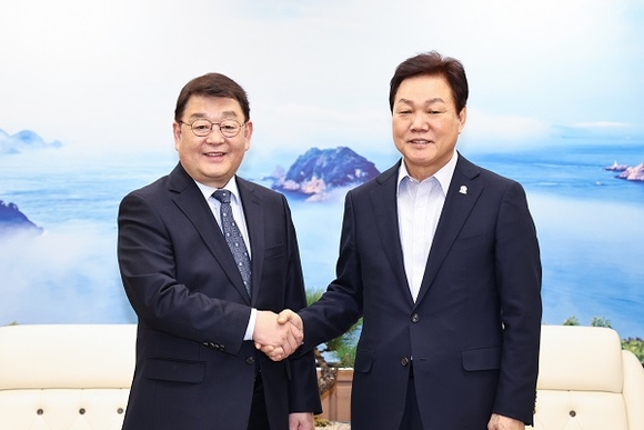 박완수 경남도지사가 12일 오후 도청에서 박성효 소상공인시장진흥공단 이사장과 만나 소상공인의 경영안정과 성장을 위한 지원 활성화 방안을 논의했다.