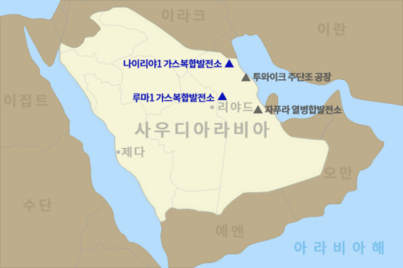 사우디 전력조달청(SPPC)이 국제입찰로 발주한 루마1과 나이리야1 프로젝트는 각각 리야드 북동쪽 80km와 470km 떨어진 곳에 1800MW급 가스복합발전소를 1기씩 건설해, 향후 25년간 생산된 전력을 SPPC에 판매하는 사업이다. 한전 컨소시엄은 지난 해 11월 SPPC와 전력판매계약(PPA)을 체결했다.