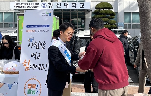 이날 행사에는 이상진 경남농협 부본부장, 김갑문 농협중앙회 창원시지부장, 홍다검 창신대 학생취창업처장 등 경남농협 임직원, 창신대 임직원 및 학생 100여 명이 참석했다. 경남농협은 500개의 백설기와 식혜를 학생들에게 나눠 주며, ‘백설기데이’의 취지 설명과 함께 범국민 아침밥 먹기 운동에 다 같이 동참해 줄 것을 당부했다.