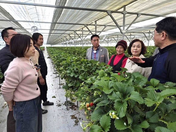 지난 12일 영동군수와 관계자 30여 명이 '1943 밀양딸기마을'을 찾아 밀양딸기의 우수한 재배 기술과 유통 전략을 벤치마킹했다.