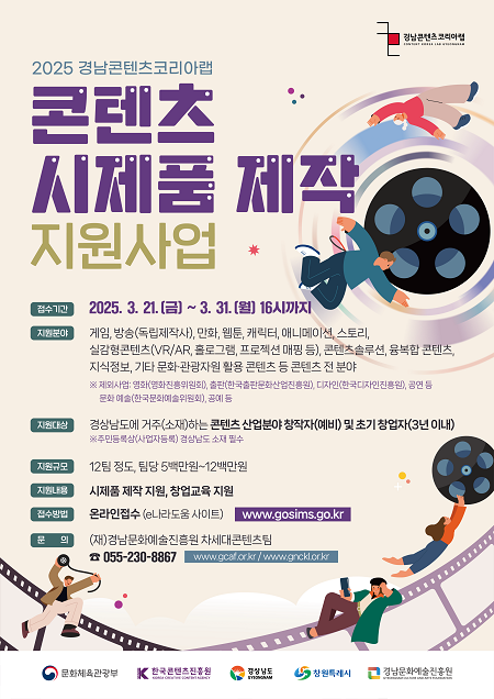 경남도와 경남문화예술진흥원은 도내 콘텐츠 산업의 성장과 초기창업자(기업) 및 예비 창작자의 경쟁력 강화를 위한 '2025 경남콘텐츠코리아랩 콘텐츠 시제품 제작 지원사업' 참가자를 모집한다고 17일 밝혔다.