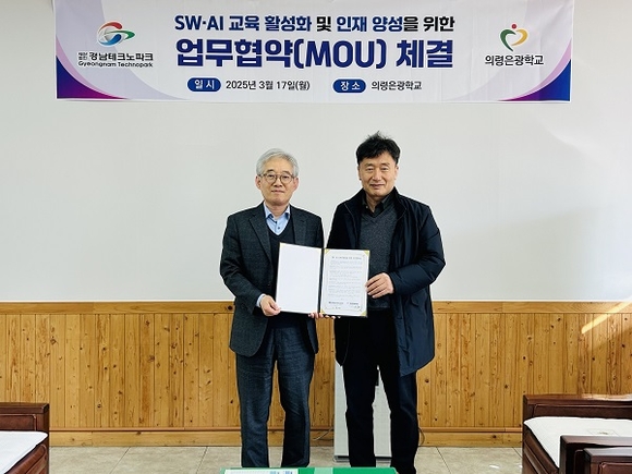 경남테크노파크(경남TP)는 17일 SW 교육과 복지 사각지대를 해소하고 학생 대상별 맞춤형 SW 교육을 제공하기 위해 공립특수학교 의령은광학교와 의령은광학교 교장실에서 업무협약(MOU)을 체결했다.