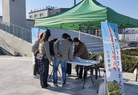 진주문화원은 우리나라 3대 누각으로 이름난 촉석루의 국가지정문화유산(보물) 승격 지정을 위해 지난 14일 진주대첩 역사공원 일원에서 시작해 앞으로 점차적으로 확대해 범시민 서명운동을 벌인다고 밝혔다.