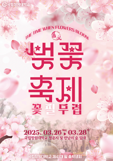 국립창원대학교는 오는 26일부터 28일까지 학생생활관 앞 연못 청운지를 비롯해 대운동장, 만남의 숲 등 캠퍼스에서 2025년 벚꽃축제 ‘꽃필 무렵’을 개최한다고 20일 밝혔다.