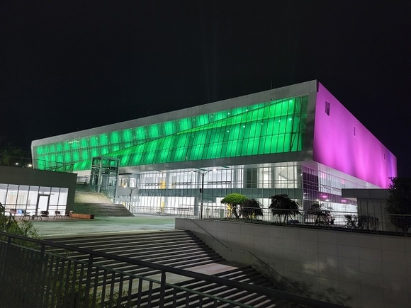 울산시설공단은 시민들로 붐비는 체육·문화공간으로의 새로운 탈바꿈을 위해 문수체육관 외부에 경관조명을 설치했다고 21일 밝혔다.