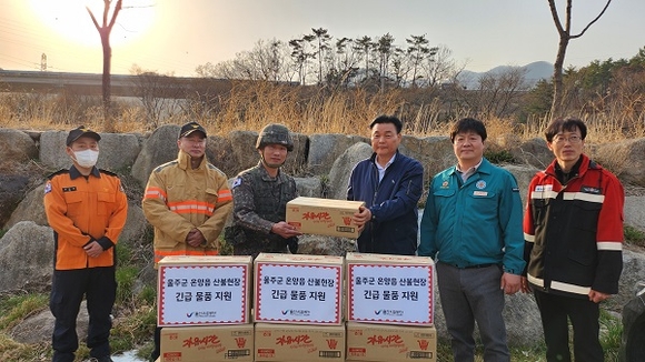 울산시설공단은 지난 24일 대형 산불이 발생한 울산 울주군 온양읍 일대에 긴급 구호물품을 전달했다고 25일 밝혔다.