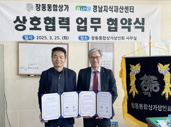 창원상공회의소 경남지식재산센터와 창동통합상가 상인회는 25일 소상공인의 지식재산권 보호 및 상권 활성화를 위한 업무협약(MOU)을 체결했다고 밝혔다. 이번 협약을 통해 양 기관은 지식재산 인식 제고, 창출·보호·활용을 위한 협력 체계를 구축하고, 창동통합상가의 지속 가능한 발전을 도모할 계획이다.