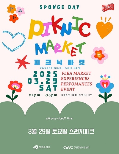 경남 창원시는 창원청년비전센터와 오는 29일 오후 1시부터 6시까지 성산구 가로수길에 위치한 스펀지파크에서 3월 스펀지데이 '피크닛 마켓'을 개최한다고 밝혔다.