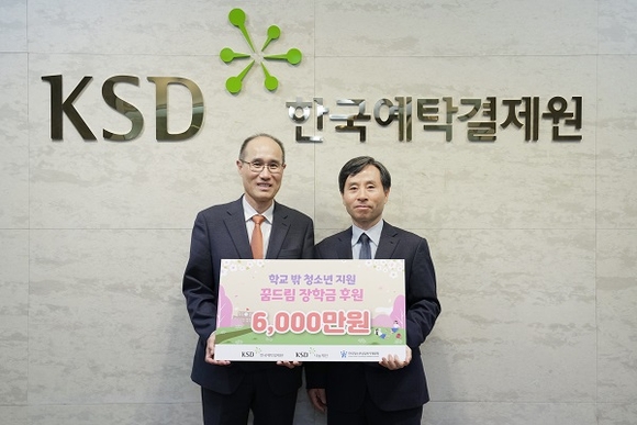 한국예탁결제원(KSD) 나눔재단이 지난 25일 부산 본사에서 한국청소년상담복지개발원에 ‘꿈드림 장학사업’ 후원금 6000만 원을 전달했다고 밝혔다.