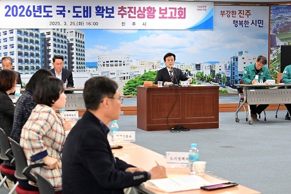 경남 진주시는 지난 25일 조규일 시장 주재로 국·과장 등 간부 공무원이 참석한 가운데 '2026년도 국·도비 확보를 위한 추진상황 보고회'를 가졌다.