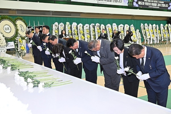 백승흥 의장을 비롯한 진주시의원 일동은 26일 산청 대형산불 진화 과정에서 희생된 창녕군 공무원과 진화대원을 애도하기 위해 합동분향소를 찾아 조문했다.