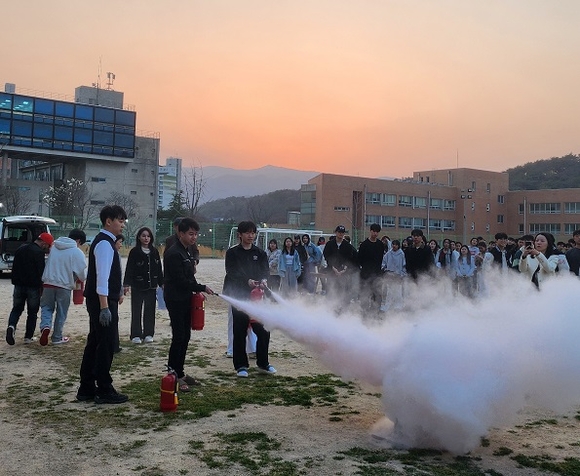 특히 이번 훈련에는 한국어교육과정에 재학중인 외국인 유학생도 참여해 실습을 통해 소화기 사용법을 익혔으며, 생활관 사생들과 함께 안전 수칙을 숙지하며 화재 발생 시 초기 대응 능력을 길렸다.