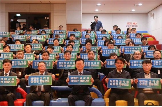 특히, 뮤타컴퍼니가 선보인 청렴 연극 ‘청렴한 삼시세끼’는 부패한 직원들이 청렴 워크숍에서 겪는 갈등을 실감 나게 그려내 참석자들의 공감을 불러일으켰다. 또한, 기관장의 청렴 다짐 발표를 통해 조직 내 청렴 경영의 중요성이 강조됐다.