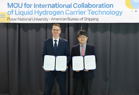 부산대학교 수소선박기술센터는 미국선급협회(ABS)와 1일 오전 센터 내 대회의실에서 '액화수소운반선 및 초저온공학 공동연구 및 기술개발 협약(MoU)'을 체결하고 상호 협력관계를 강화해 나가기로 했다고 밝혔다.