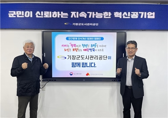 부산 기장군도시관리공단이 1일 보건복지부와 한국보건복지인재원이 주관하는 ‘인구문제 인식개선 릴레이 캠페인'에 동참했다고 밝혔다.