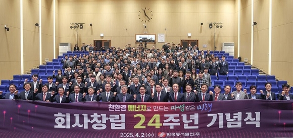한국동서발전은 창립 24주년을 맞아 2일 오전 본사 대강당에서 비전 선포식을 열고 ‘에너지 혁신을 선도하는 친환경 에너지 기업’을 새로운 비전으로 발표했다고 밝혔다.