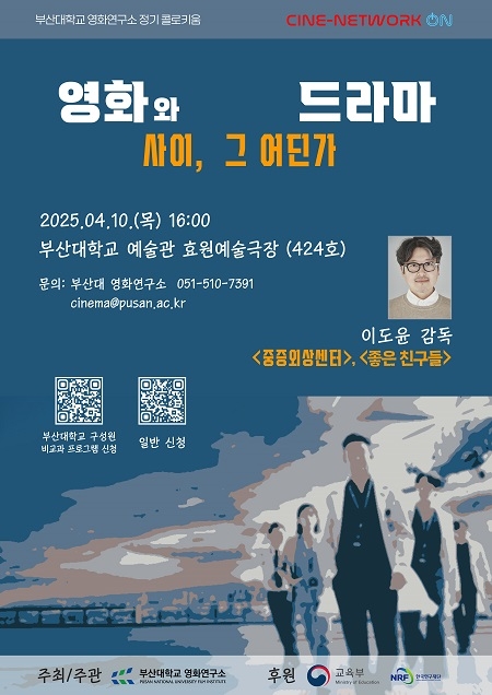 부산대 영화연구소는 이도윤 감독을 초청해 '부산대학교 영화연구소 정기 콜로키움 CINE-NETWORK ON' 행사를 오는 10일 오후 4시 교내 예술관 효원예술극장(424호)에서 개최한다고 3일 밝혔다.