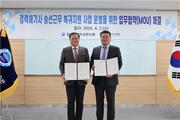 한국해양수산연수원이 지난 2일 한국선박관리산업협회와 함께 ‘경력해기사 승선근무 복귀지원 사업’의 효율적 운영 및 성과 제고를 위한 업무협약을 부산 본원에서 체결했다고 밝혔다.