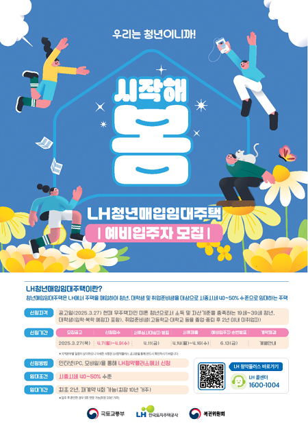 한국토지주택공사(LH)는 7일부터 무주택 청년·신혼부부와 중산층·서민층 등을 위한 매입임대주택 청약 접수를 시작한다고 밝혔다.