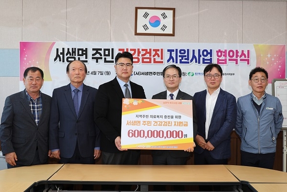 한국수력원자력(주) 새울원자력본부는 서생면 주민의 의료복지증진을 위해 7일 (사)서생면주민협의회와 주민 건강검진 지원사업에 대한 협약을 체결하고 총 6억 원을 지원하기로 했다고 밝혔다.