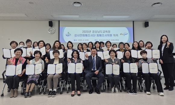 경남도교육청은 8일 도교육청 미래교육원 1층 연수실에서 '2025년 경상남도교육청 성사안피해조사단 피해조사위원' 28명에게 위촉장을 전달했다.