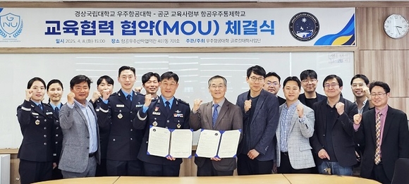 경상국립대학교 우주항공대학은 지난 8일 오후 우주항공대학 항공우주산학협력관에서 공군교육사령부 항공우주통제학교와 우주분야 교육 협력을 위한 업무협약을 체결했다고 11일 밝혔다.