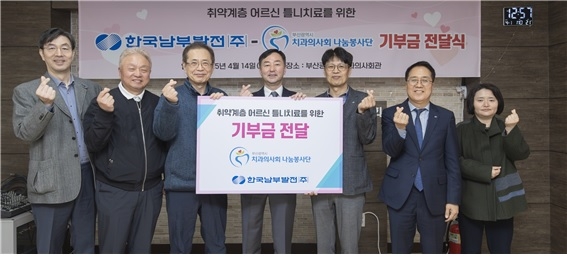 남부발전은 14일 동구 초량동의 부산시치과의사회 건물에서 부산치과의사회 나눔봉사단에 부산 남구의 홀몸 어르신, 저소득층 가정 어르신의 틀니제작 및 틀니치료 지원을 위한 온누리상품권(1,500만원)을 전달했다고 밝혔다.
