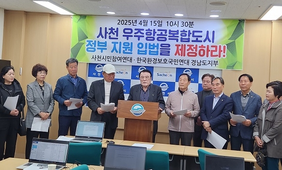 경남 사천지역 시민단체가 6월 대선 출마 후보들에게 우주항공복합도시 조성을 위한 입법안을 공약에 반영해야 한다고 촉구했다.