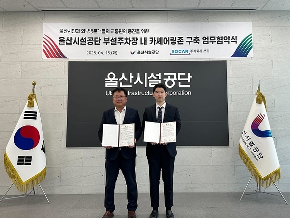 울산시설공단은 국제정원박람회를 앞두고 울산시민과 관광객들의 교통 편의 증진을 위해 지난 15일 쏘카와 업무협약을 체결하고 카셰어링 서비스를 도입한다고 16일 밝혔다.