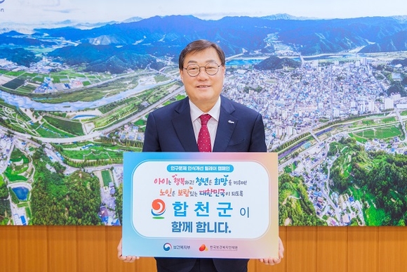 경남 합천군은 지난 15일 보건복지부와 한국보건복지인재원이 주관하는 '인구문제 인식개선 릴레이 캠페인'에 김윤철 군수가 동참했다고 밝혔다.