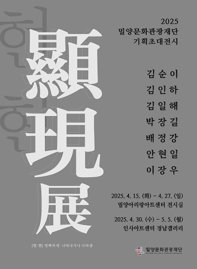 밀양문화관광재단은 오는 27일까지 밀양아리랑아트센터 전시실에서 기획초대전시 '顯現展(현현전)'을 연다고 16일 밝혔다.