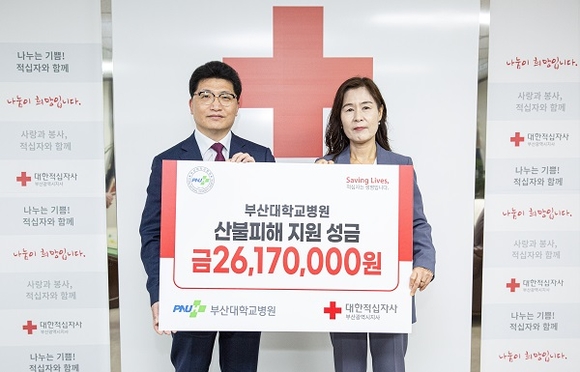부산대학교병원은 17일 오후 최근 경남·경북·울산 등 영남지역에서 잇따라 발생한 대형 산불로 피해를 입은 이재민들을 돕기 위해 대한적십자사 부산지사에 구호 성금 2600만 원을 전달했다고 밝혔다.