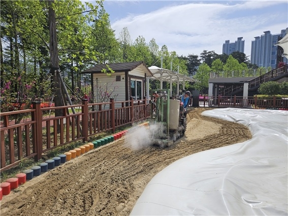 이번 소독은 시민들의 발길이 잦은 도심백사장, 에어바운스, BF(Barrier-Free)놀이터 등 주요 놀이시설에 사용되는 모래를 중심으로 진행됐다.