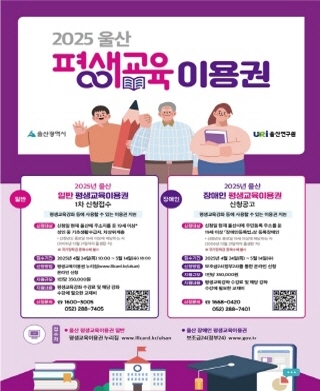 울산시는 교육 사각지대 해소와 시민 평생학습권 보장을 위해 ‘2025년 평생교육이용권(이하 ’이용권‘) 지원사업’을 본격 추진한다고 23일 밝혔다.