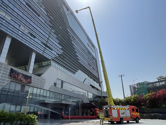 이번 훈련은 사옥 내 카페에서 화재가 발생한 상황을 가정해 △상황전파·보고 △화재대피, 응급구조 △자위소방대 초동대응 △합동 화재진화 순으로 진행됐다.