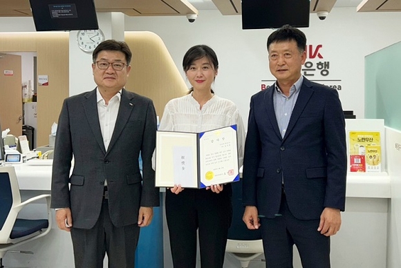 BNK경남은행은 대방동지점에 근무 중인 직원이 보이스피싱을 예방한 공로로 창원중부경찰서로부터 ‘감사장’을 받았다고 25일 밝혔다.