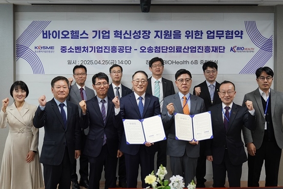 중소벤처기업진흥공단은 25일 충북 청주 소재 오송첨단의료산업진흥재단과 바이오헬스 중소벤처기업의 혁신성장 지원을 위한 업무협약을 체결했다고 밝혔다.