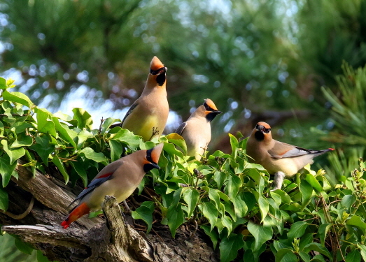 이어 15~21일까지 울주군 서생면 해안가 곰솔에 붙은 송악열매를 먹는 200여 마리의 홍여새가 시민생물학자인 윤기득 사진작가에 의해 포착됐다.